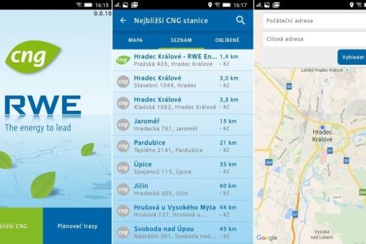 Přehled českých CNG stanic v mobilní aplikaci od RWE