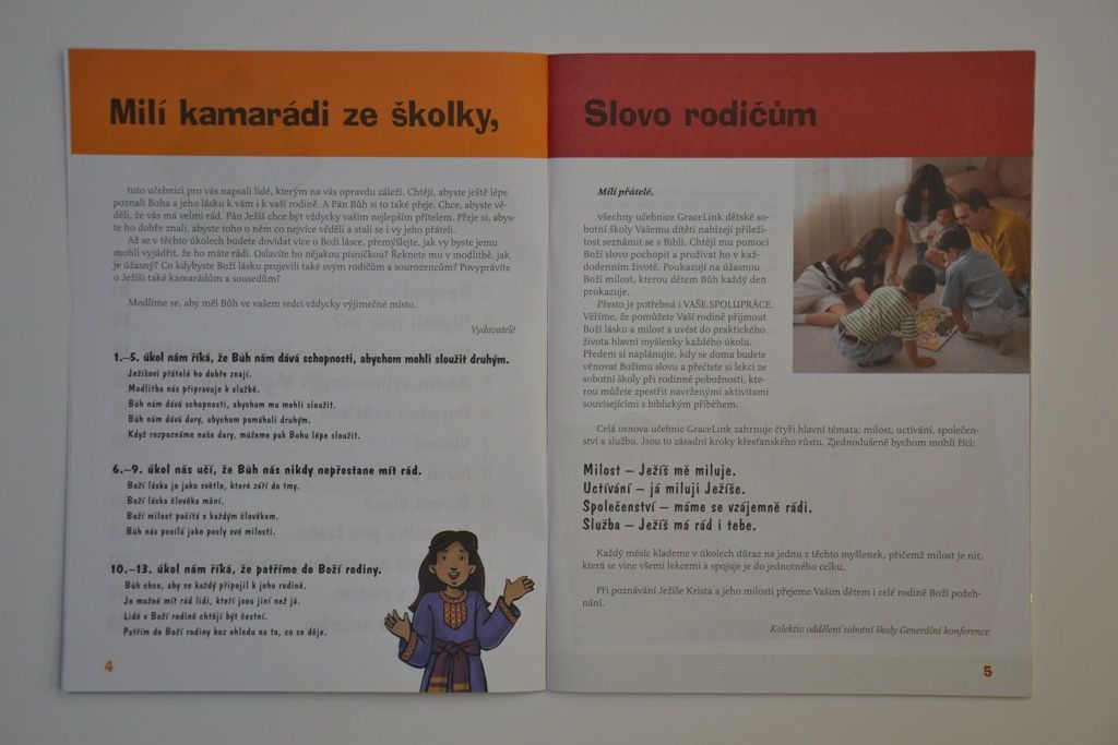 Přesto budou děti potřebovat také a především Vás, abyste jim pomohli vnést poselství o Boží lásce a milosti do života rodiny a dobře upevnit to, co se učí v sobotní školce. Promyslete si, kdy si vyhradíte čas na každodenní studium se svým dítětem. Během společných pobožností si spolu čtěte biblický příběh a úkol a také se zapojte do aktivit, které mají upevnit biblické poselství v dětském myšlení a cítění.