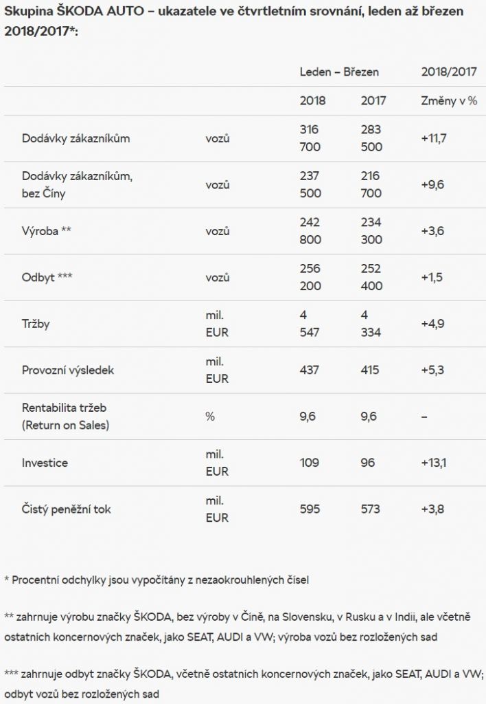 ŠKODA AUTO opět zvýšila tržby, dodávky vozů zákazníkům a provozní výsledek
